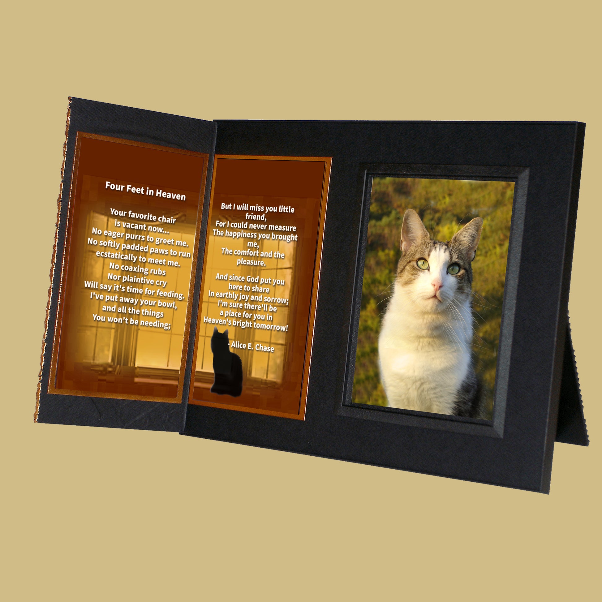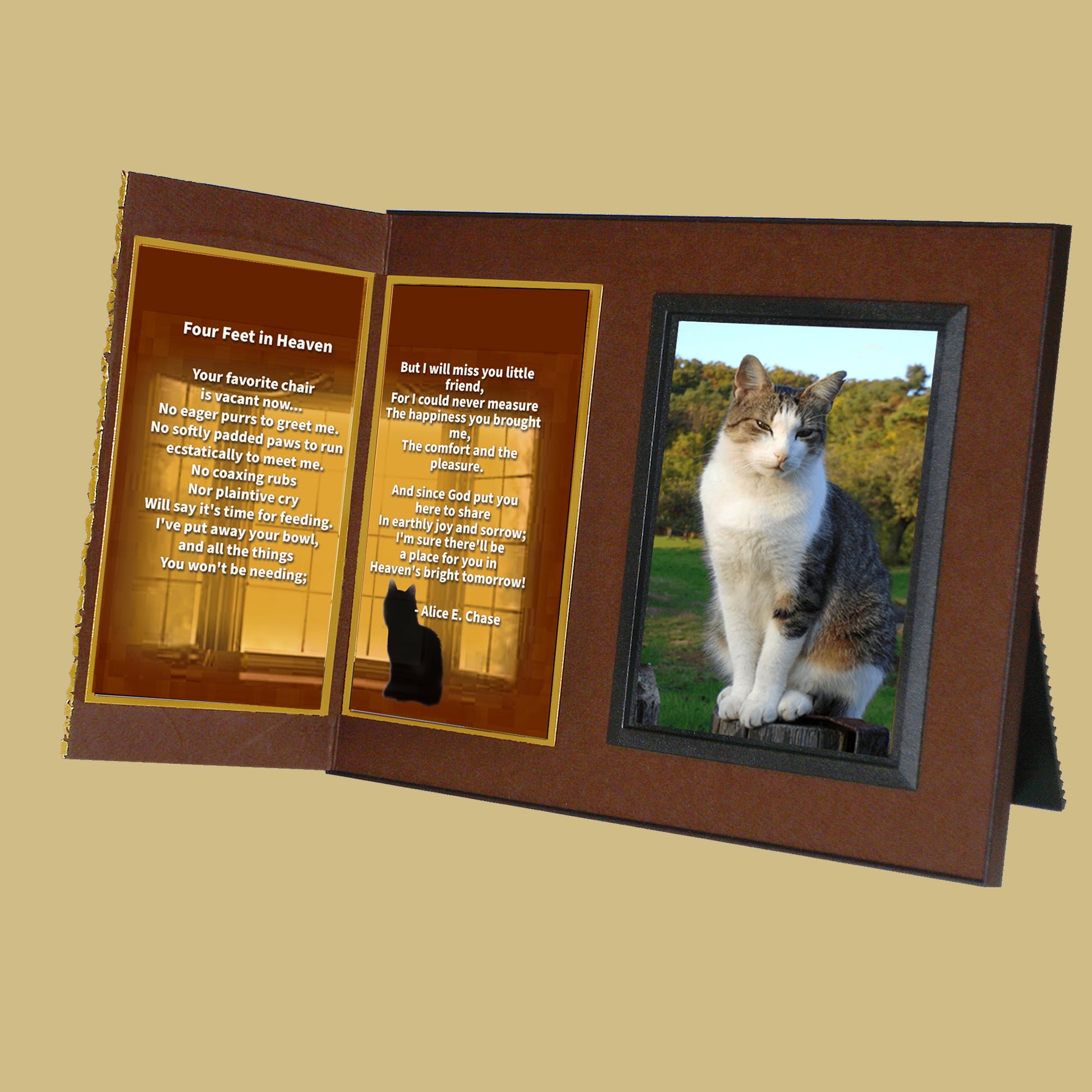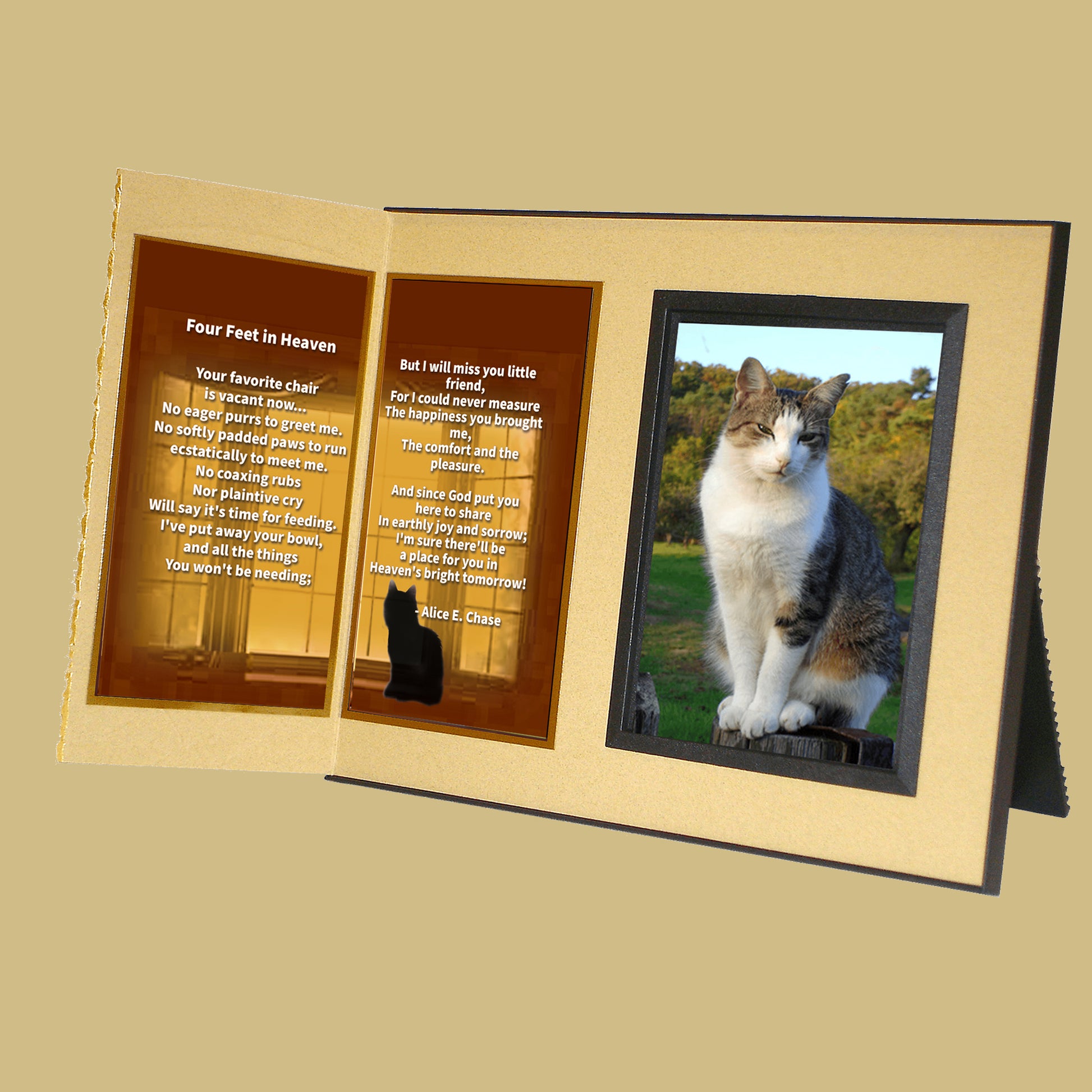 Personalized for you, this gift includes your choice of comforting poems, the pet’s photo, a gift card for your personal message... all elegantly presented in a matching gift box to make a complete gift ensemble.