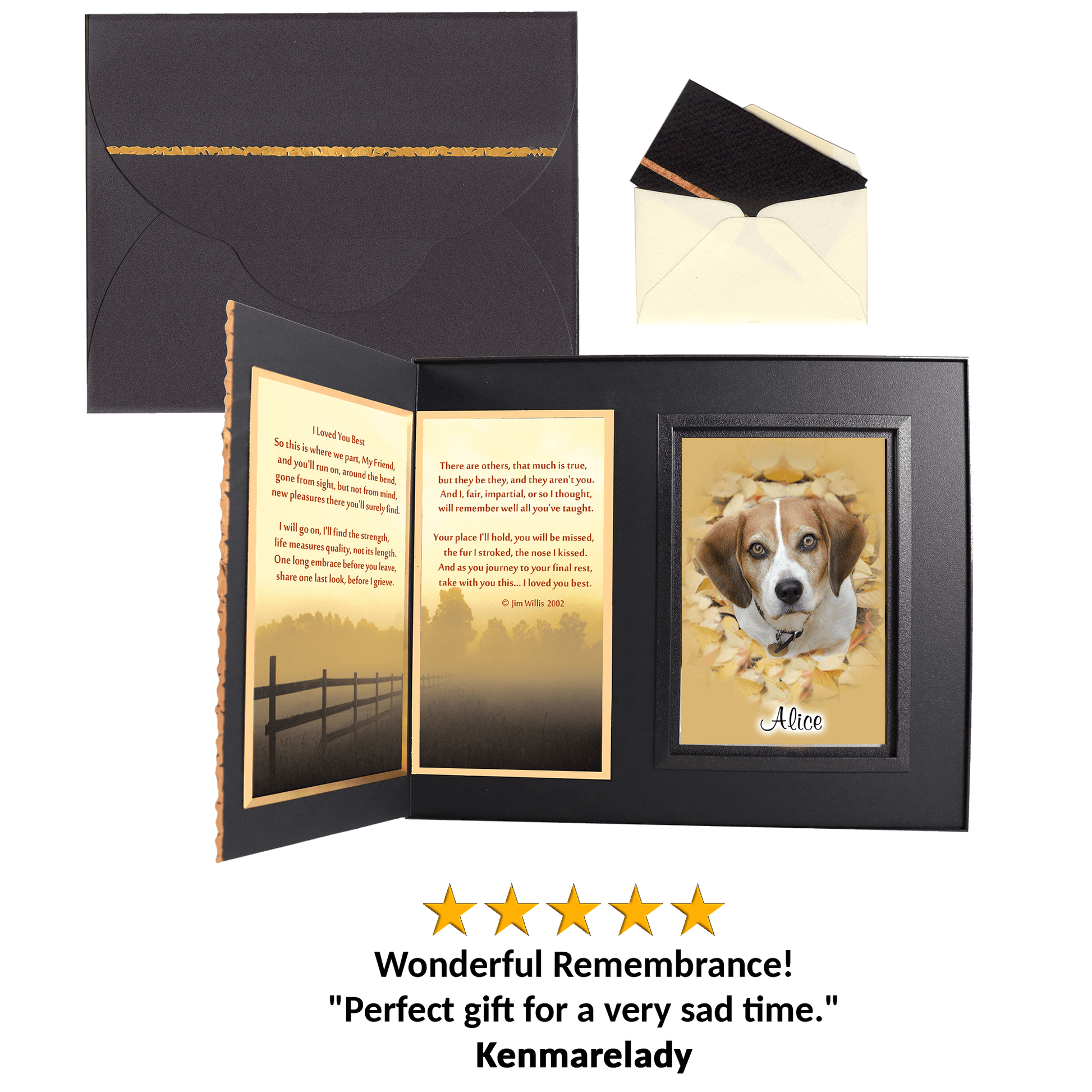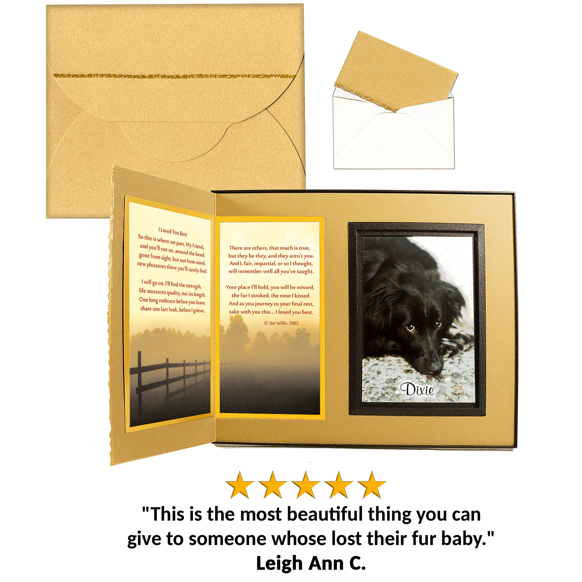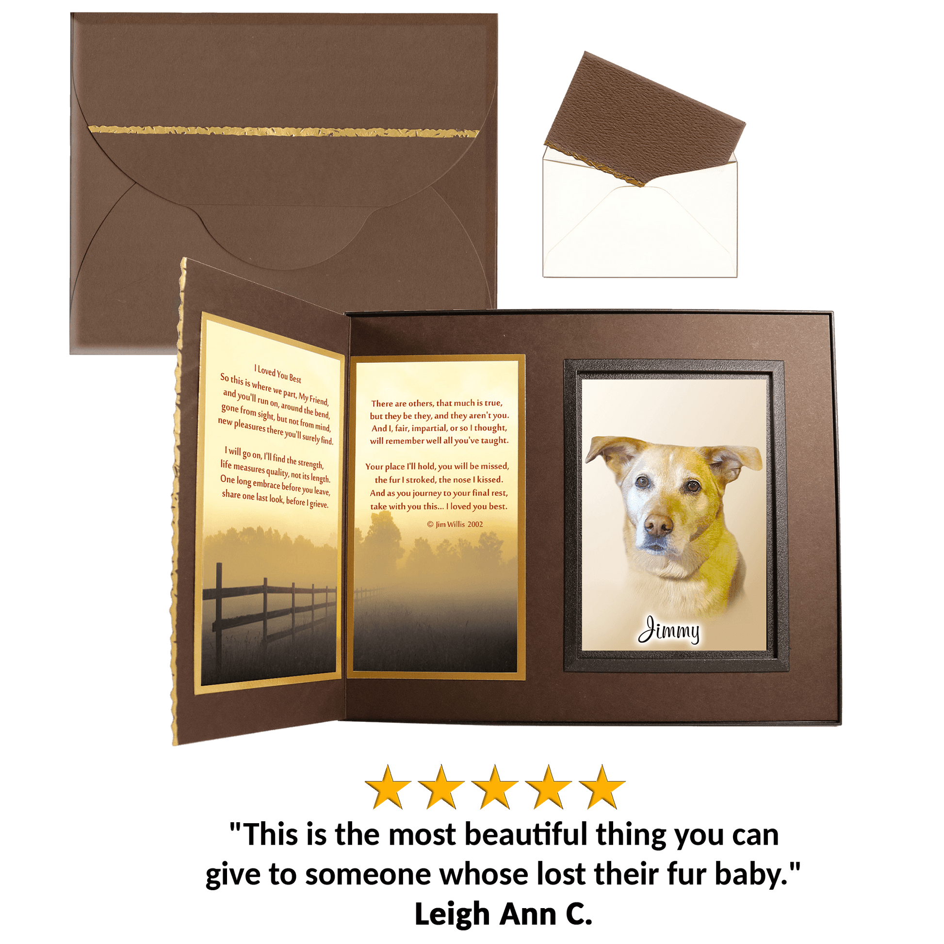 Personalized for you, this gift includes your choice of comforting poems, the pet’s photo, a gift card for your personal message... all elegantly presented in a matching gift box to make a complete gift ensemble.