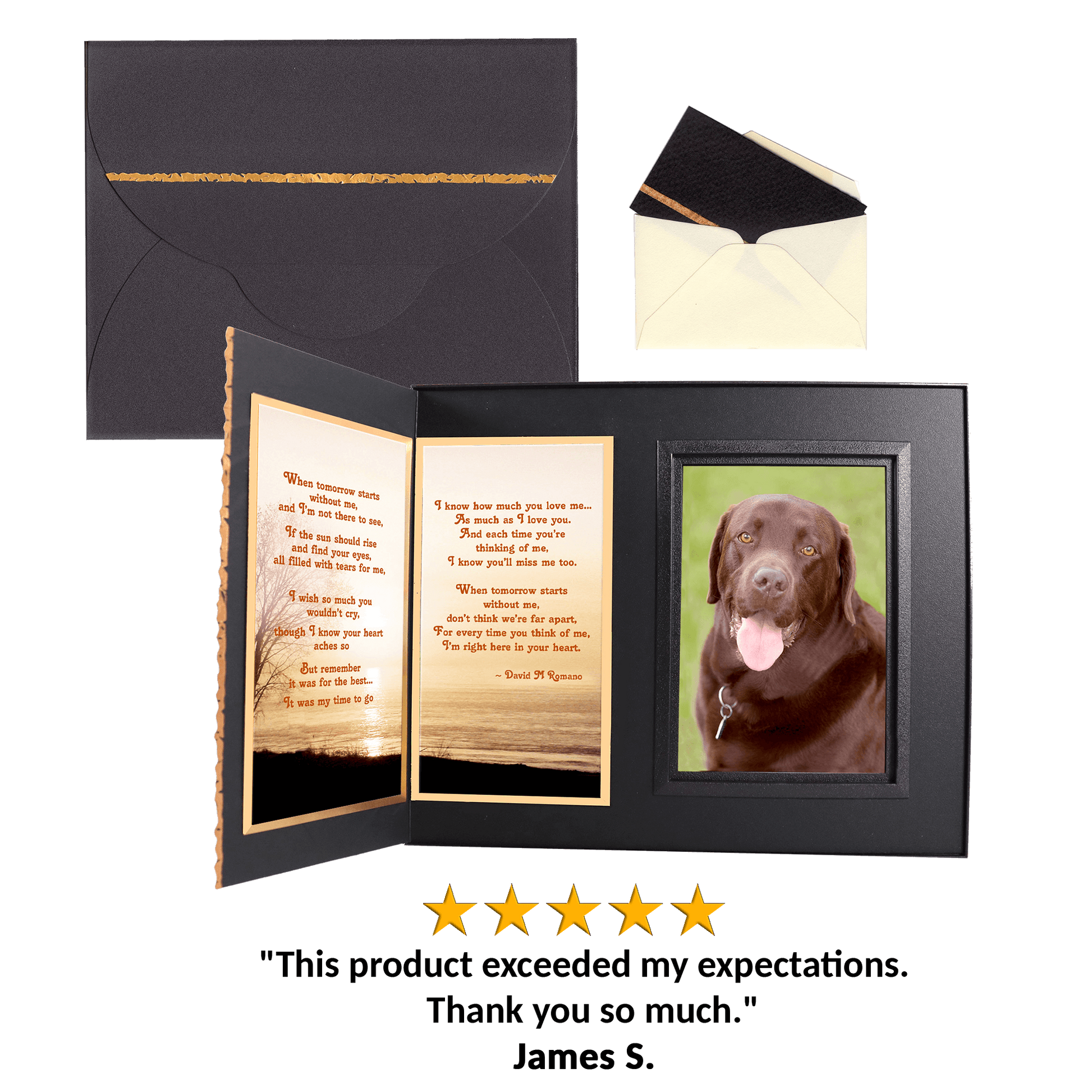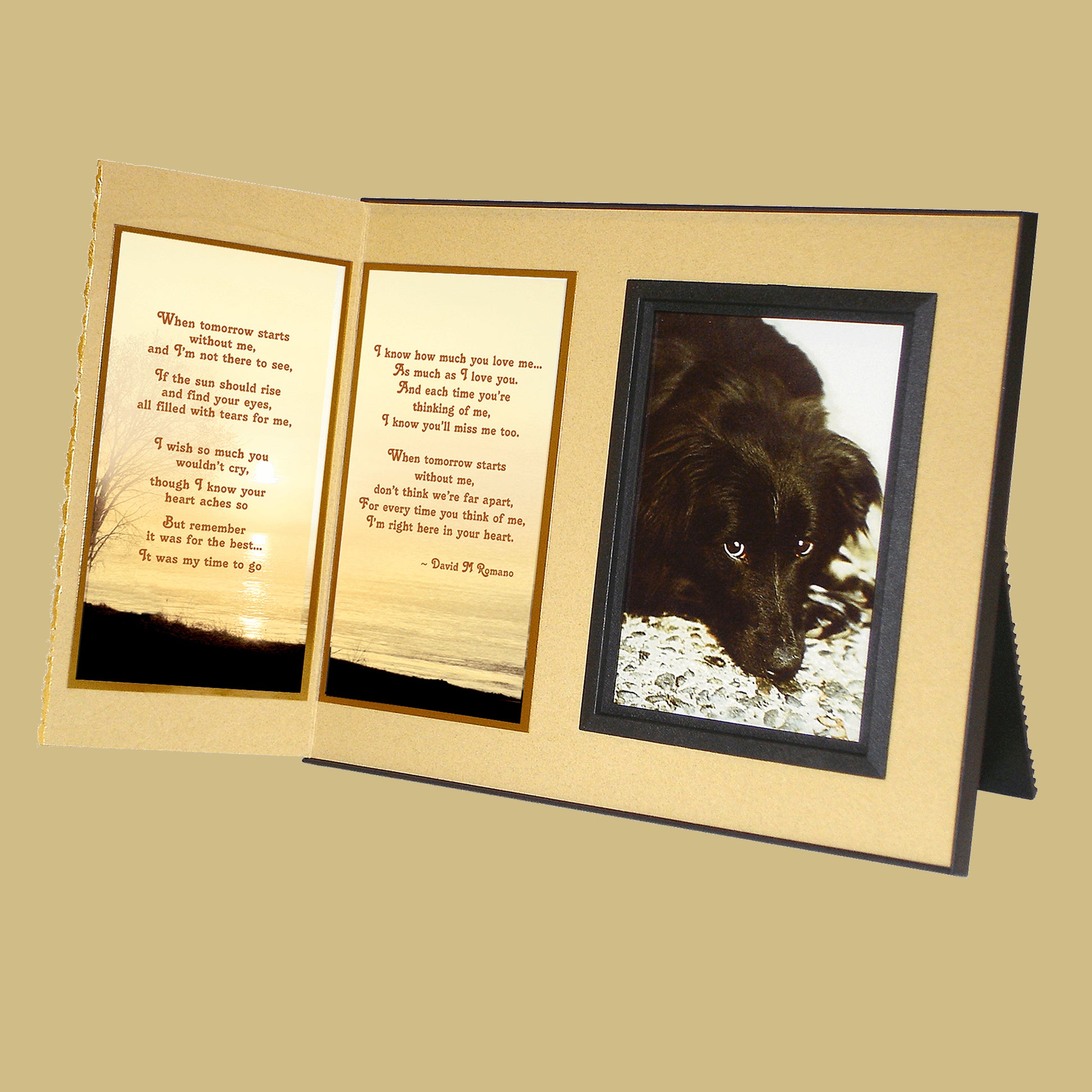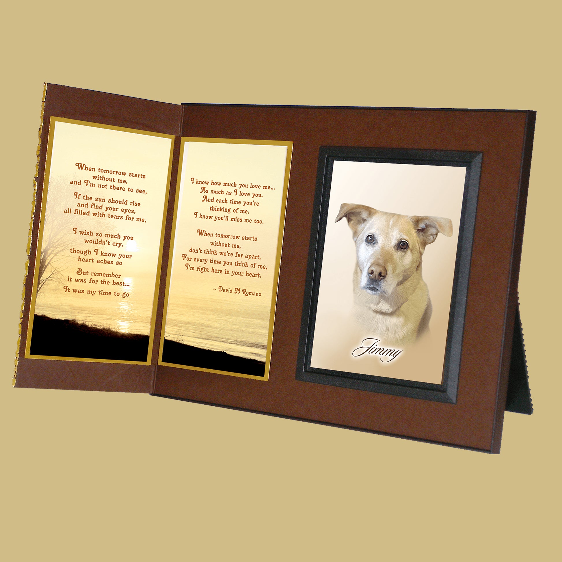 Personalized for you, this gift includes your choice of comforting poems, the pet’s photo, a gift card for your personal message... all elegantly presented in a matching gift box to make a complete gift ensemble.