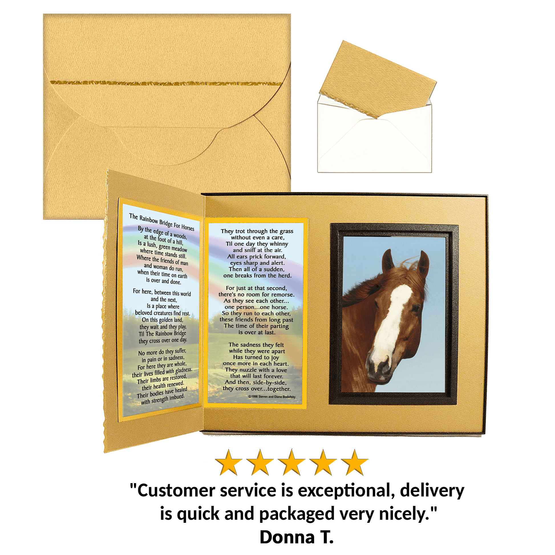 Personalized for you, this gift includes your choice of comforting poems, the pet’s photo, a gift card for your personal message... all elegantly presented in a matching gift box to make a complete gift ensemble.
